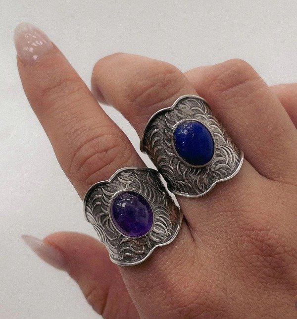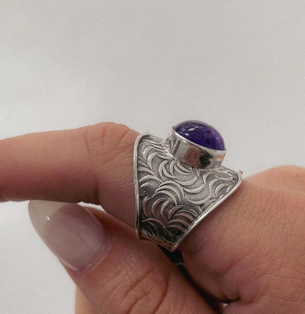 Anillo plata 925 con piedra oval amatista (violeta). Medida Regulable