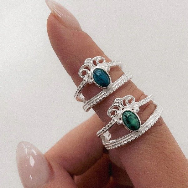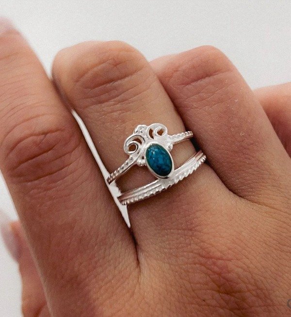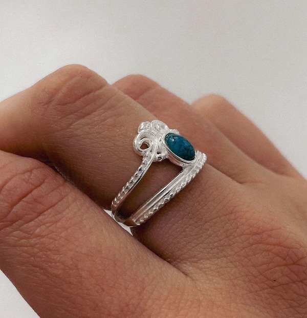 Anillo doble de plata 925 con piedra en el centro. Medida N19