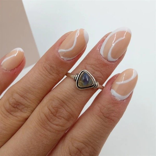 Anillo de plata 925 con triangulo engarzado de piedra natural labradorita. Medida n14.