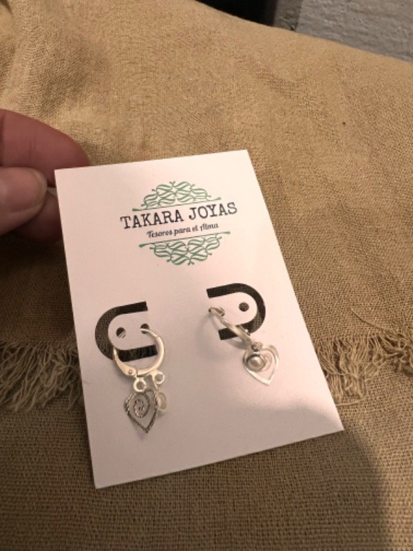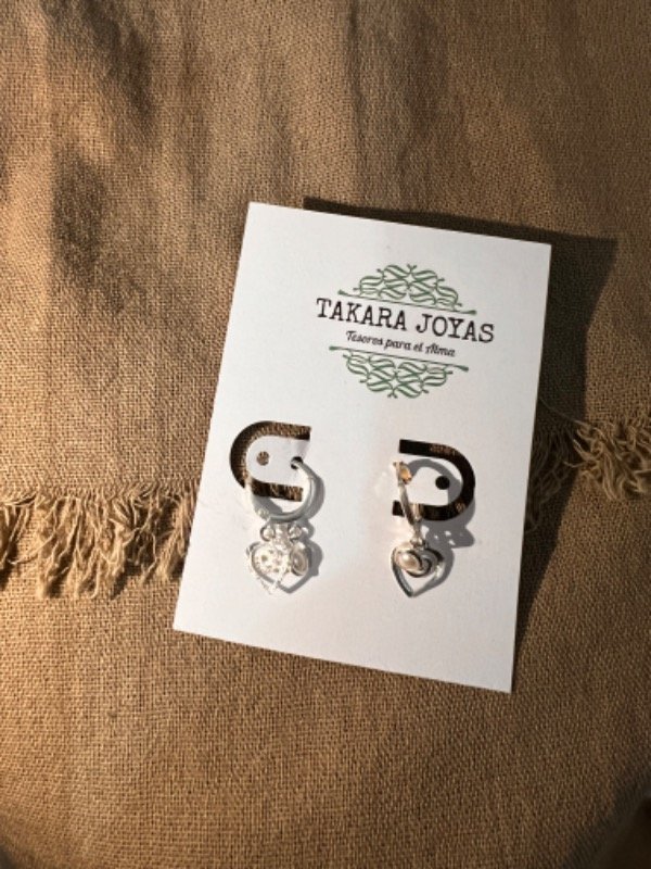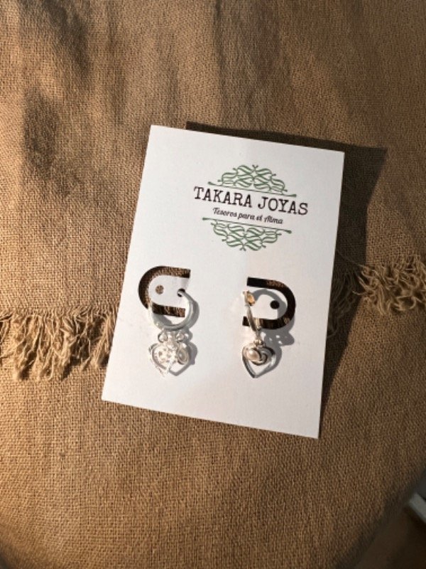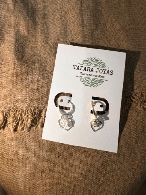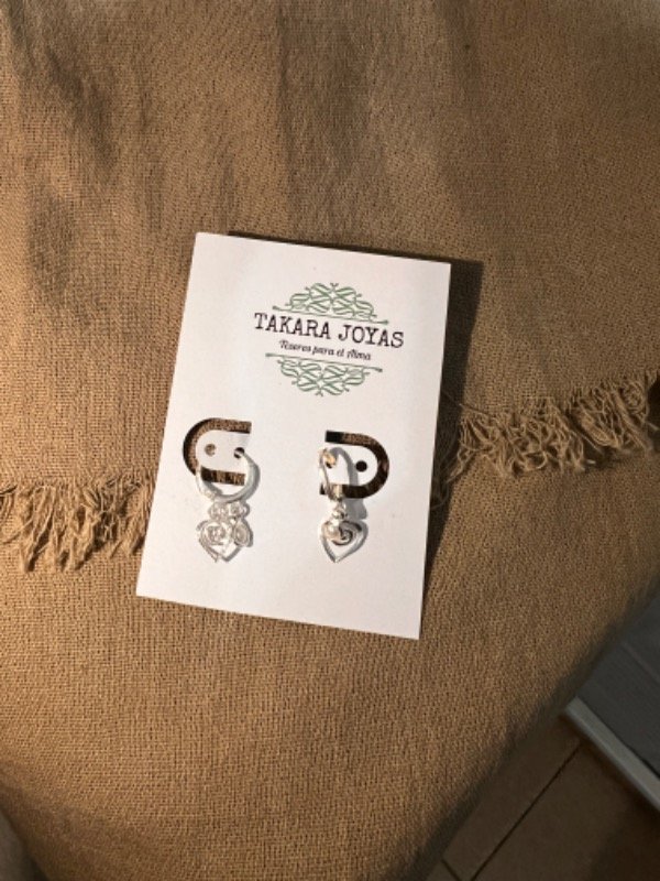 Argolla Brisura Plata 925 con corazon espiralado y perlita colgante. Medida Aprox. 2cm.