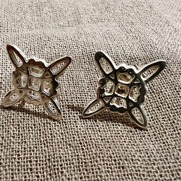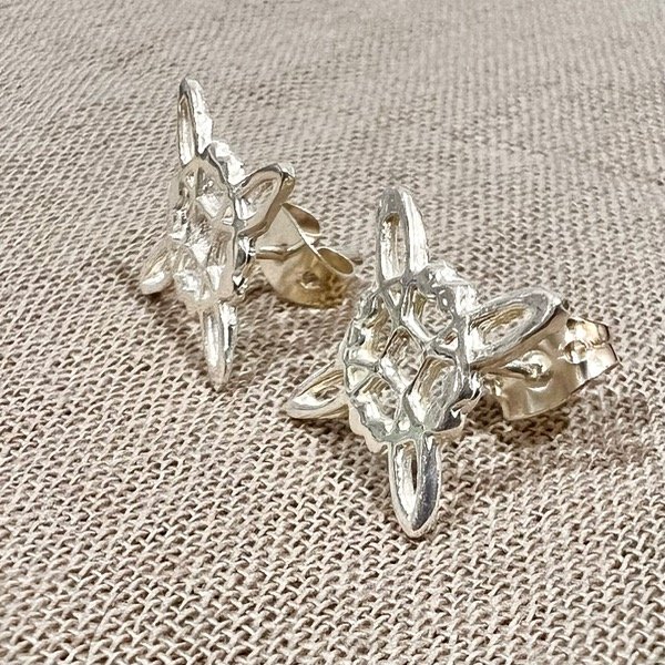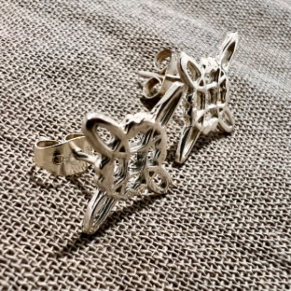 Aros pasantes con forma de nudo de bruja. Plata 925. Medida 1,2 cm